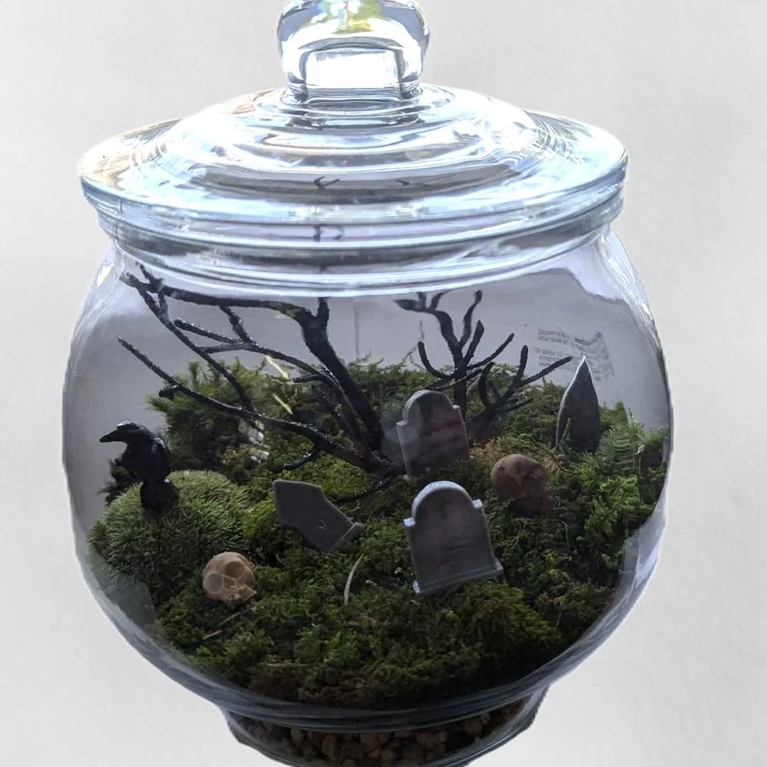 Materials Provided: All materials, including a selection of faux foliage and flowers, preserved moss, a colorful selection of mushrooms, and other decorations will be provided. Feel free to bring any personal touches or additional decorations!